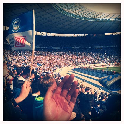 … zweite Liga, nie mehr, nie mehr! 46.000 Zuschauer jubeln nach Herthas verdientem 4:0 gegen Osnabrück.