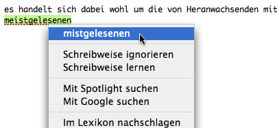 Korrekturvorschlag der internen Mac OS X Rechtschreibhilfe.