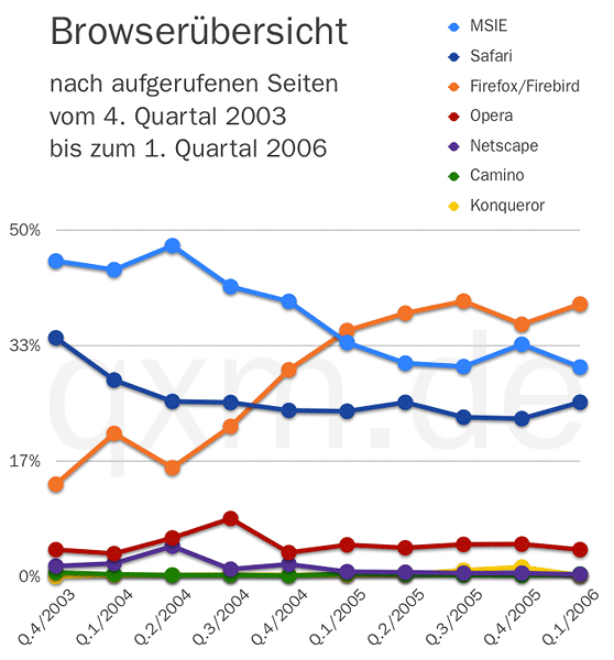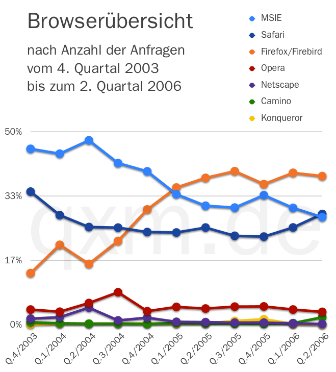 2. Quartal 2006 Leichte Verluste bei Firefox und Opera, Safari überholt erstmals den Internet Explorer, größter Gewinner ist Camino, dessen Anteil an den ...