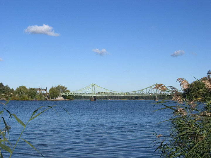 Die Glienicker Brücke, die Berlin mit Potsdam verbindet, ist berühmt: 1945 spielte sie in einem UFA-Film mit, während des kalten Krieges wurden dort Agenten ausgetauscht, und in den letzten Jahren sah man sie häufig im Dr. Oetker Pizza Ristorante Werbespot. Seit 1907 ist sie aus Stahl, vorher war sie – von Friedrich Karl Schinkel entworfen – aus Stein: